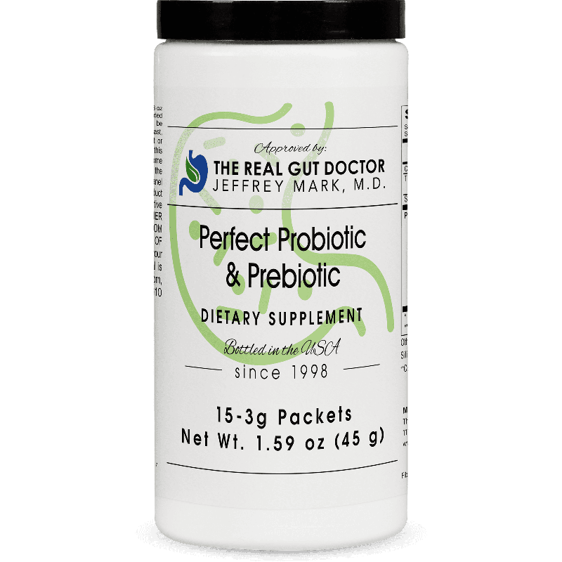 Perfect Probiotic & Prebiotic Jeffrey Mark, M.D., ABIM, ABAARM, NBPAS | Board Certified in Anti-Aging, Regenerative and Functional Medicine. Board Certified in Gastroenterology and Internal Medicine These statements have not been evaluated by the Food and Drug Administration. This product is not intended to diagnose, treat, cure, or prevent any disease. This product is a maximum-strength probiotic for cases of acute gastrointestinal (GI) and immune challenges. Going beyond the threshold of traditional probiotic support, highdose probiotics influence gut health and immunity in ways lower-dose probiotics cannot. Shown to activate over 1,700 genes involved in immune and inflammatory signaling, high-dose probiotics support a healthy, balanced immune response. Delivering 225 billion active probiotic cultures per packet, this product creates a rapid response to reset the immune system and maintain normal inflammatory balance. Each convenient, single serving packet provides six proven strains chosen for their ability to survive the harsh GI environment and deliver superior results.