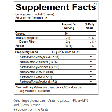 Because probiotics are live organisms, there are many challenges associated with manufacturing and distributing probiotic supplements. For a probiotic to be effective, it must be shelf-stable through the expiration date and precisely delivered to the intestinal tract, where it can have maximum benefit. The microorganisms in this product are protected, sealed, and freeze dried away from moisture, heat, light and oxygen. This allows the bacteria to remain dormant until they are exposed to moisture in the GI tract.